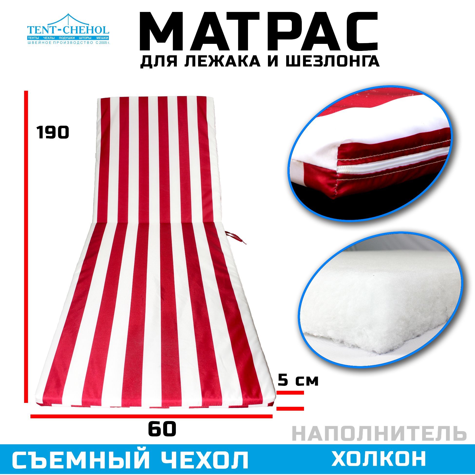 Краткое описание «Матрас для шезлонга 190х60х5 (бело-красный)»