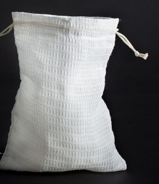 Мы изготавливаем мешочки из вафельной ткани разных размеров, это самый большой из популярных размеров вафельных мешочков. Вафельная ткань очень гигроскопичная, она прекрасно впитывает воду. У нее наилучшая впитываемость среди всех видов хлопка. Это довольно прочная ткань, которая прекрасно пропускает через себя воздух, содержимое мешочка не будет слеживаться.