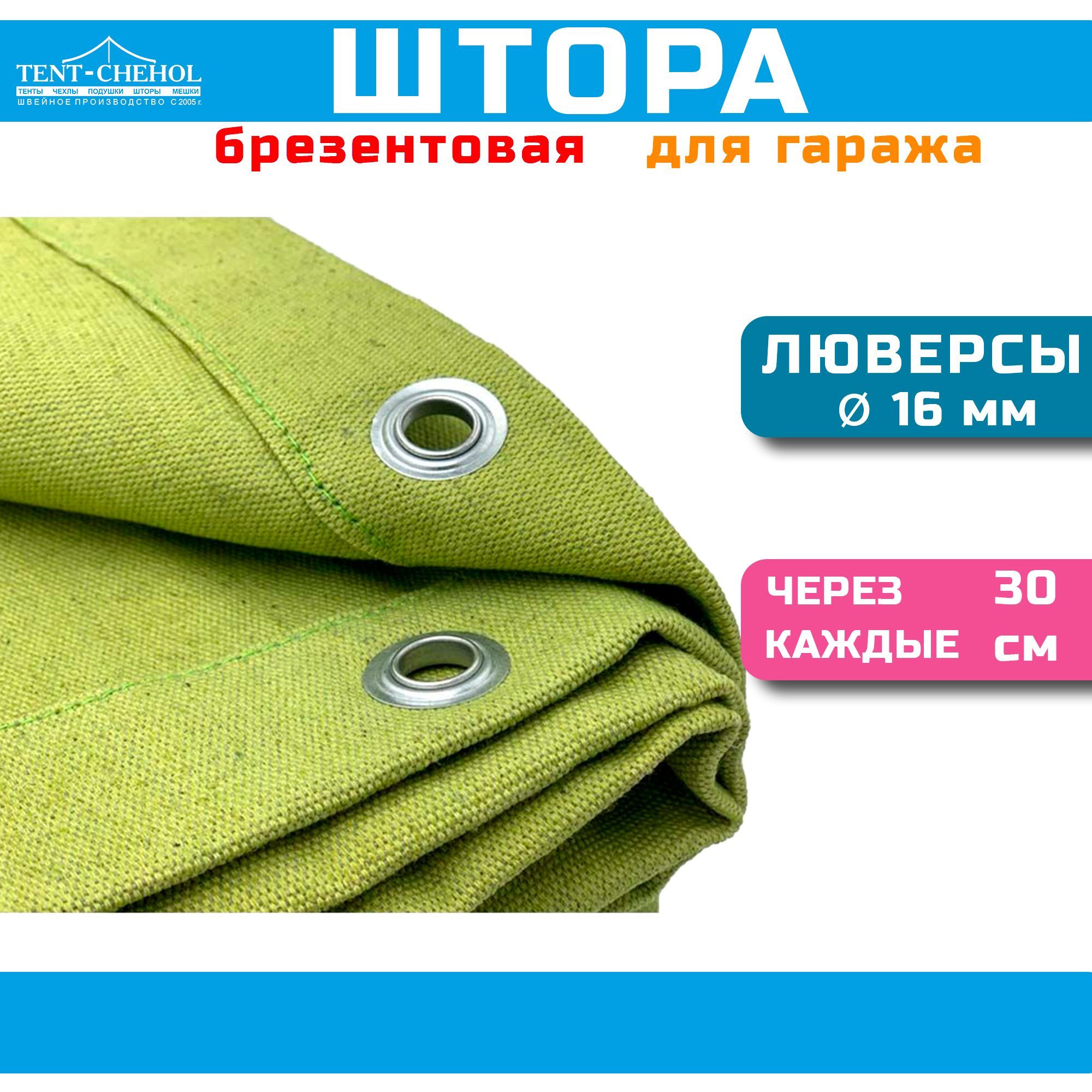 Штора из огнеупорного брезента с люверсами подходит для использования в гараже в качестве завесы с целью защиты помещения от холода и иных воздействий внешней среды, кроме воздействия повышенной влажности и прямых попаданий осадков.Штора изготовлена из усиленного огнеупорного брезента плотностью 420 г/кв.м, соответствует нормам ГОСТ.