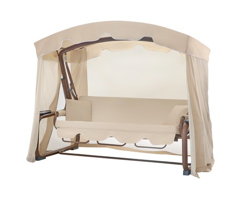 Тенты и шторы, предназначенные для садовых качелей способны очень хорошо защитить от осадков и прямых солнечных лучей. Это очень важно, так как краска на металлических частях качелей может сильно трескаться и облазить, а металл в тот момент, когда он контактирует с водой, будет подвергаться воздействию коррозии. Кроме того, негативно повлиять на лакокрасочное покрытие могут и ультрафиолетовые лучи, в данном случае краска будет шелушиться и отпадать, а цвет не будет таким ярким. Кроме того, выгореть могут и мягкие элементы, они будут выглядеть не так привлекательно. Благодаря тенту, предназначенному для садовых качелей можно защитить качели от падающих веток и птичьего помёта, из-за чего летний отдых станет хуже. Качели, у которых есть тент, выглядят намного более привлекательно, что тоже является огромным преимуществом в пользу выбора тента.