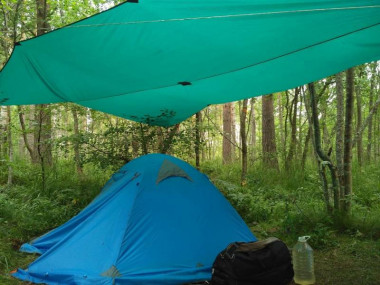 Туристический тент – защитное полотно из высококачественного материала, обеспечивающее защиту от атмосферных осадков, прямых солнечных лучей и кровососущих насекомых. Благодаря не большому весу и люверсам, его легко переносить, осуществлять монтаж и демонтаж.