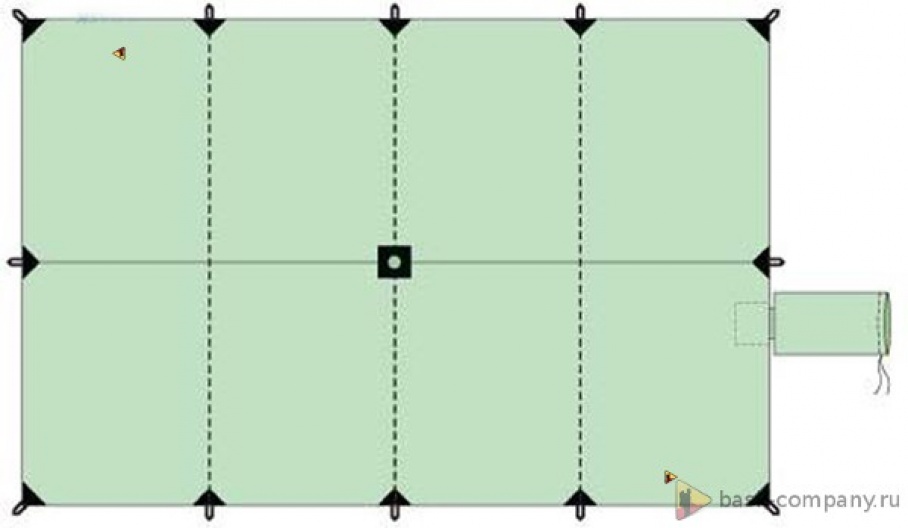Туристический тент 3х4,5 - укрытие для стоянки. В центре тента имеется карман для стойки, которую можно изготовить из подручных материалов.
